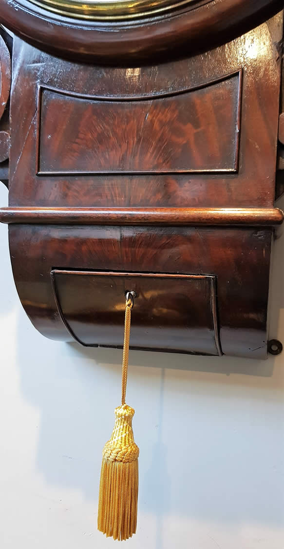 English William IV large size, Rosewood, twin fusee, striking and repeating, 8 day drop dial Wall Clock.