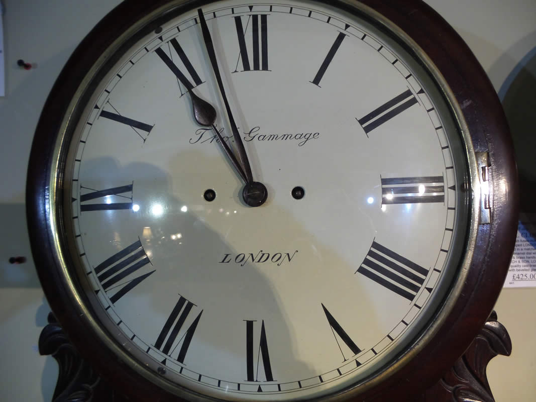 Very rare Striking Mahogany Drop Dial by Thomas Gammage, London.