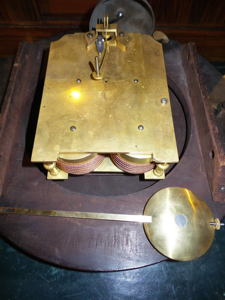 Very fine spade hands and extremely rare convex one piece mahogany dial. Convex glass and cast brass bezel.