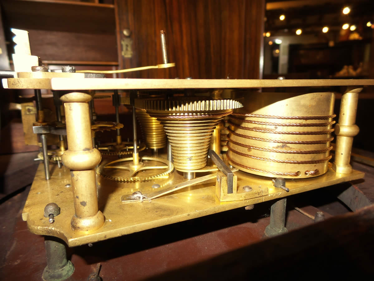 Having the original very heavy twin fusee movement with shouldered plates and repeat mechanism. Wall clocks that strike and repeat are very rare.