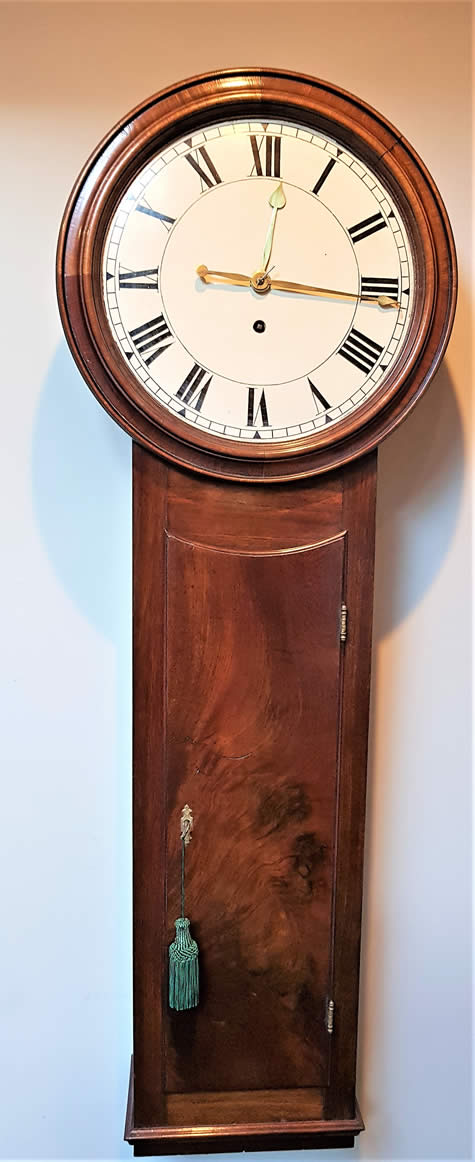 Early 19th century 8 day mahogany drop dial Wall Clock.