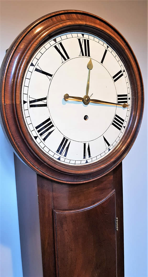 19th century Norwich Style weight driven 8 day Drop Dial Clock in mahogany case.