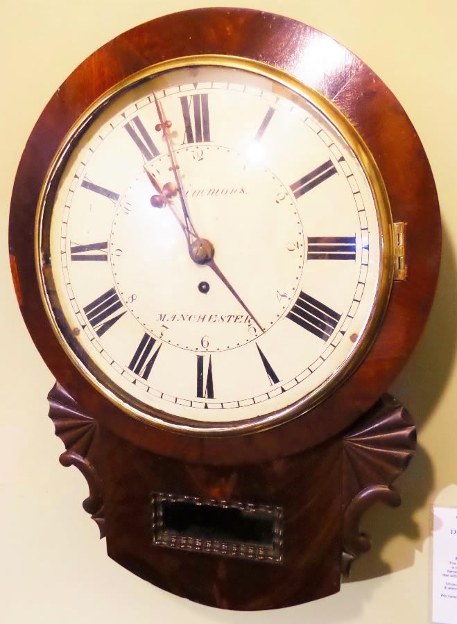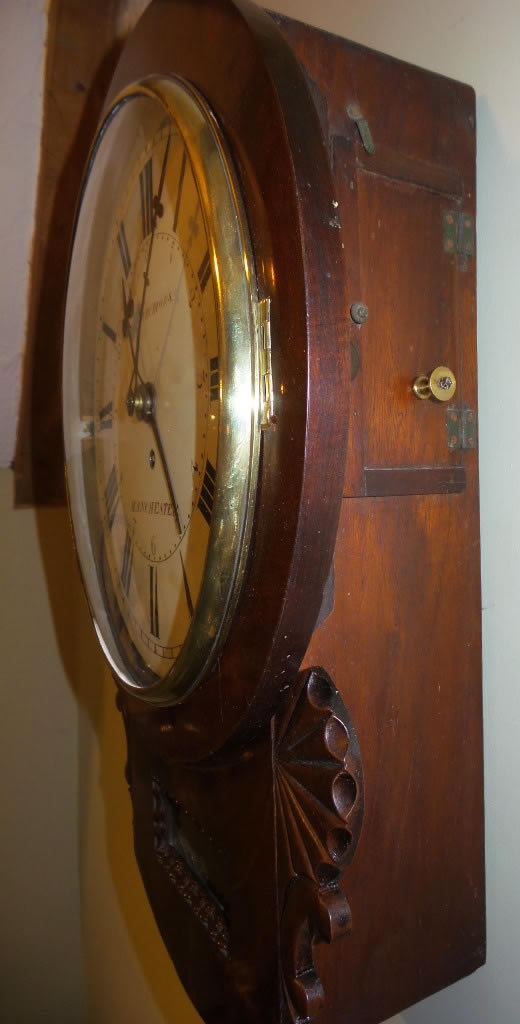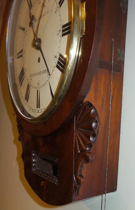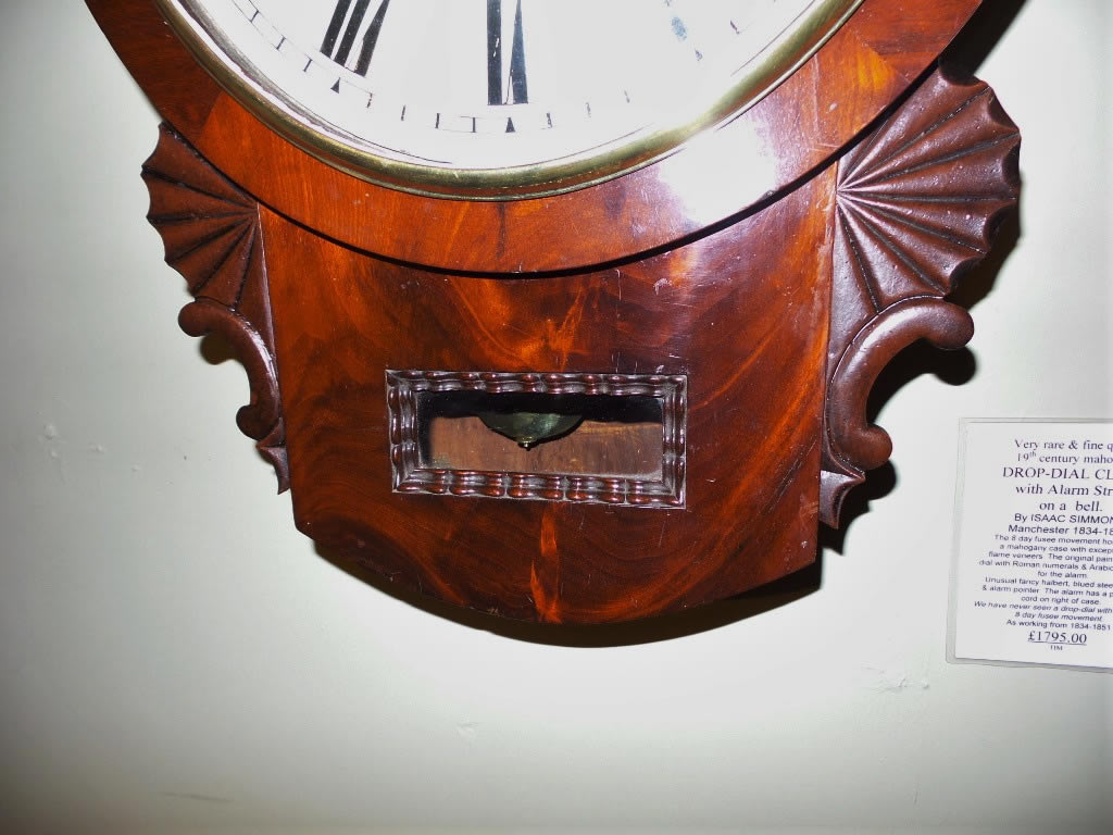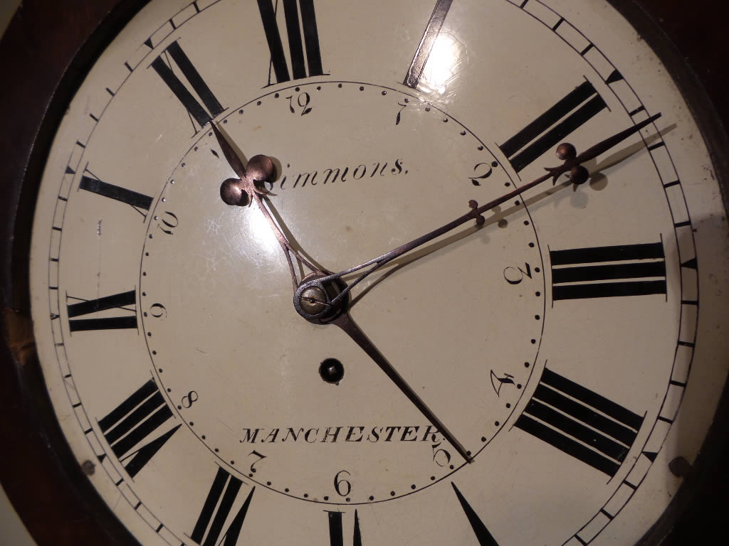 Very rare and fine quality 19th Century mahogany Drop-Dial Clock with alarm strike on a bell, by Isaac Simmons Manchester 1834-1851.